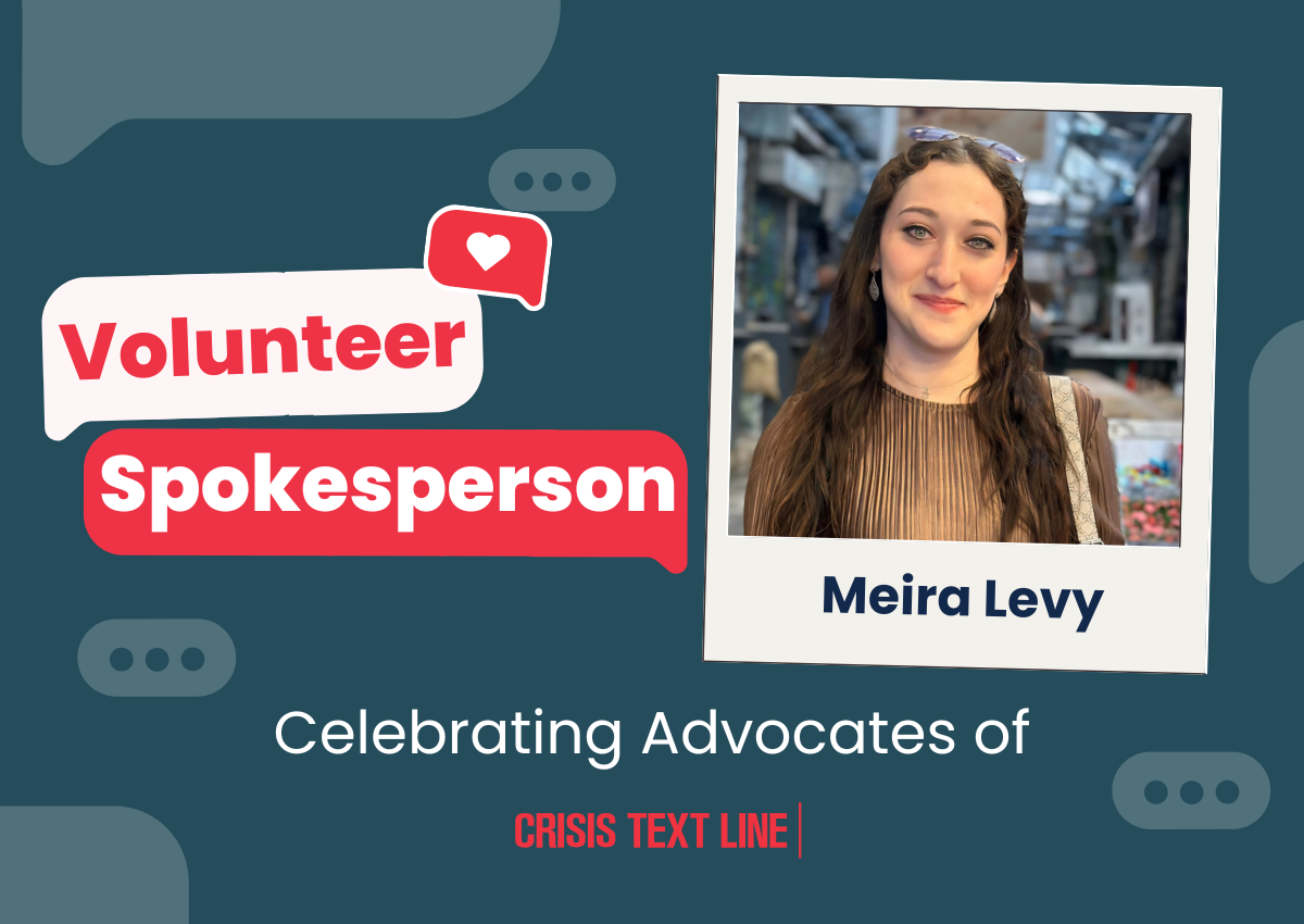 Our dedicated volunteer spokespeople play a vital role in spreading the word about our critical service. By sharing their voices, stories, and passion for mental health, they help raise awareness, break down stigma, and ensure more people know that free, 24/7 support is just a text away. Their commitment extends our reach and strengthens our mission to be there for anyone in need. This month we recognize Meira, a volunteer Crisis Counselor who has been with us for over two years. Below she shares her experience supporting others through mental health crises.