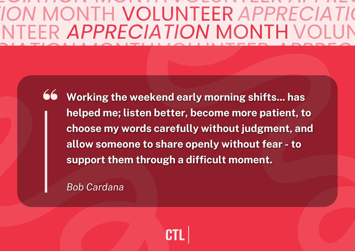 As our volunteer Crisis Counselors describe, volunteerism is an experience that not only benefits those who are seeking support but it creates a two-way effect in which the volunteer is also positively impacted by the work they do. Below we further discuss volunteerism and the impact it makes on the individual and the community.