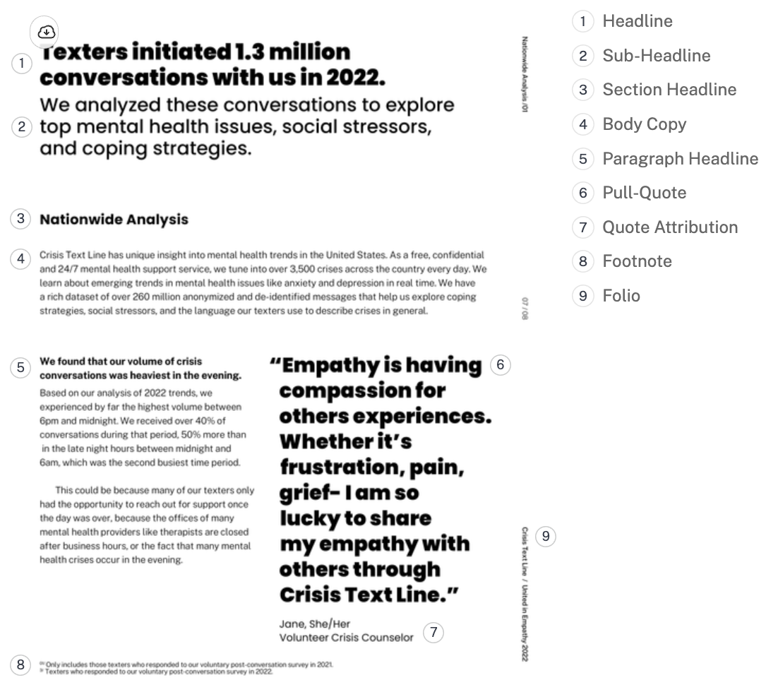 Use the logo as a hyperlink directing to the Crisis Text Line website or to information about a Crisis Text Line white-label partnership.