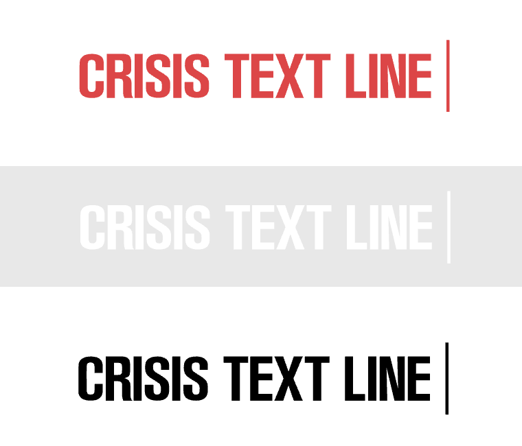 Use the standard Crisis Text Line logo when driving awareness through a partner-branded campaign or keyword initiative.