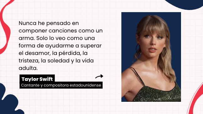 “Nunca he pensado en componer canciones como un arma. Solo lo veo como una forma de ayudarme a superar el desamor, la pérdida, la tristeza, la soledad y la vida adulta.”