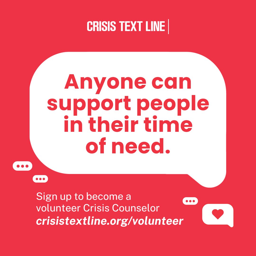 Who are volunteer Crisis Counselors? They are trained volunteers who—with the support of full-time Crisis Text Line staff—use empathy, active listening, collaborative problem solving, and safety planning to help texters in their moment of crisis.